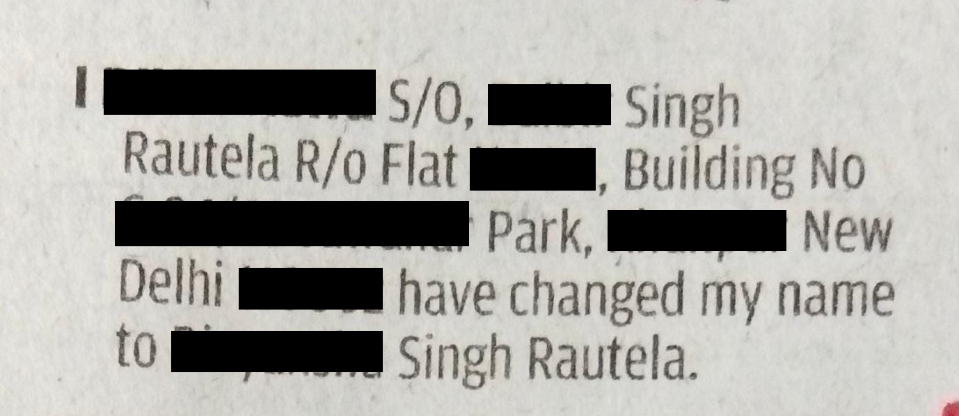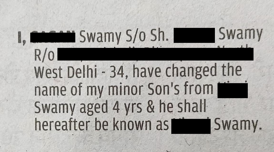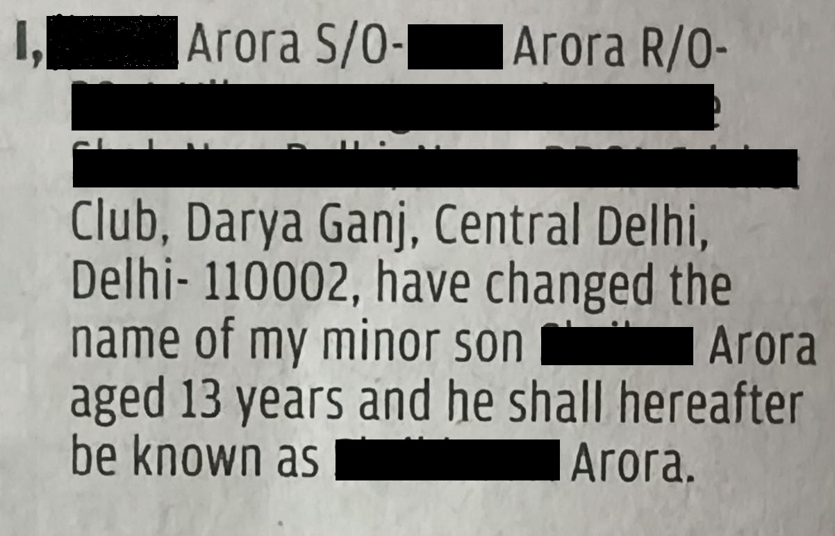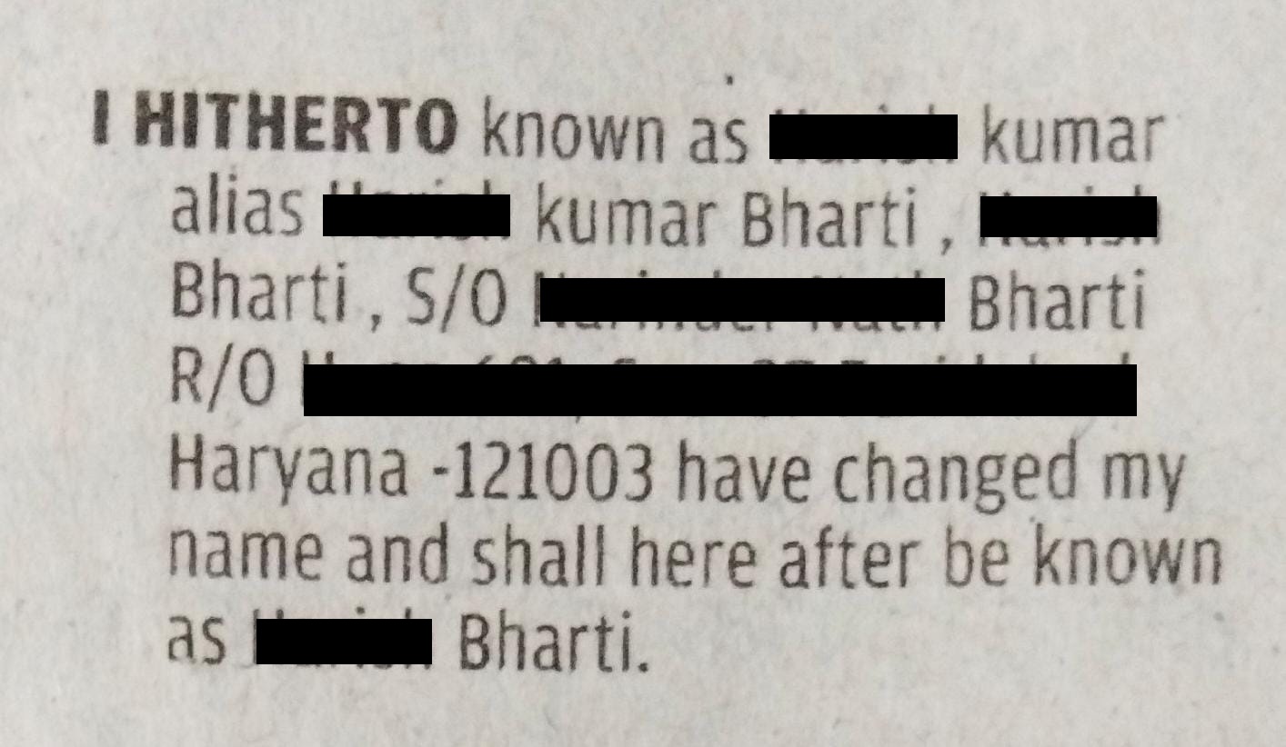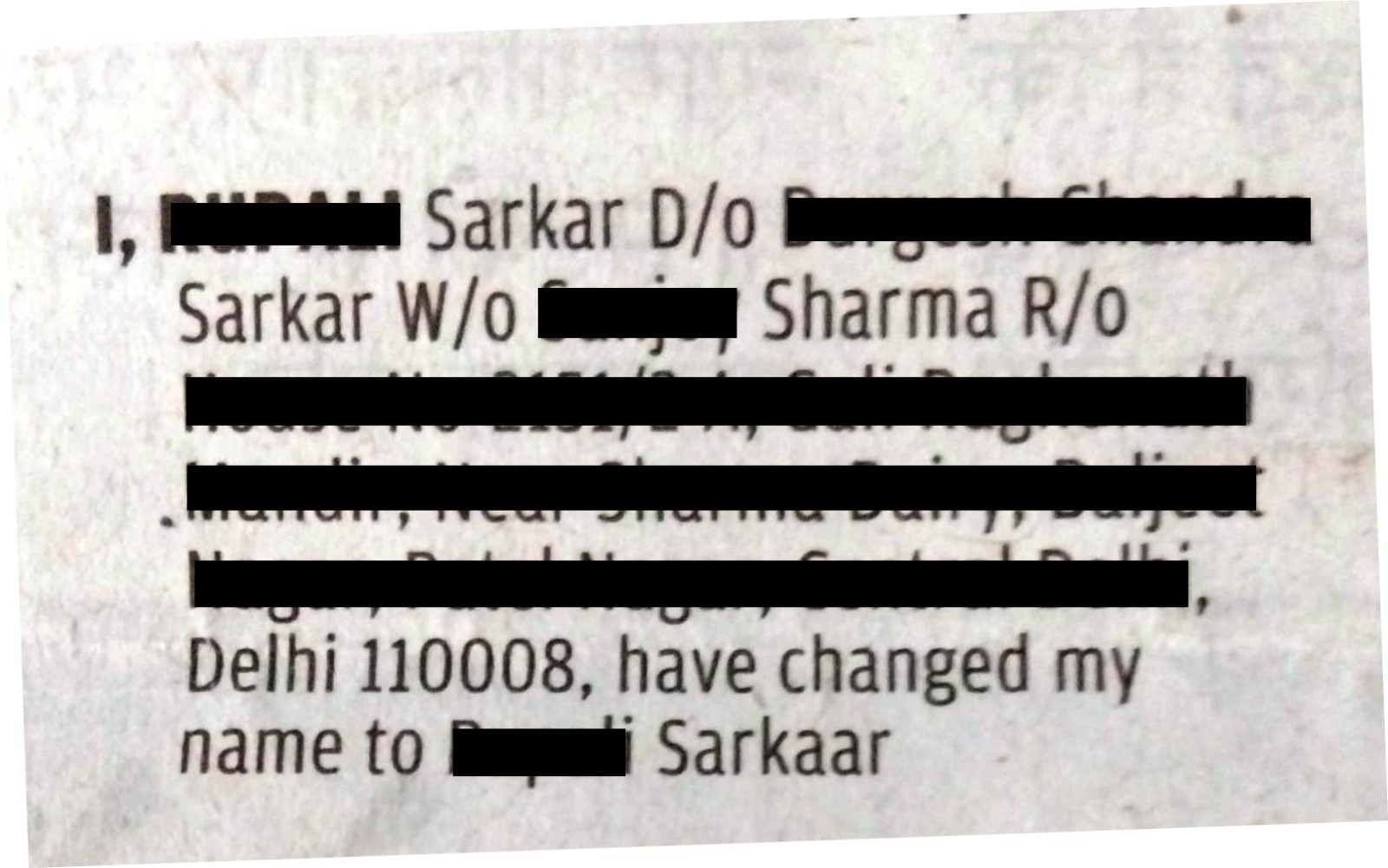 In India, changing your name necessitates a newspaper article, an affidavit, and a Gazette Notification.