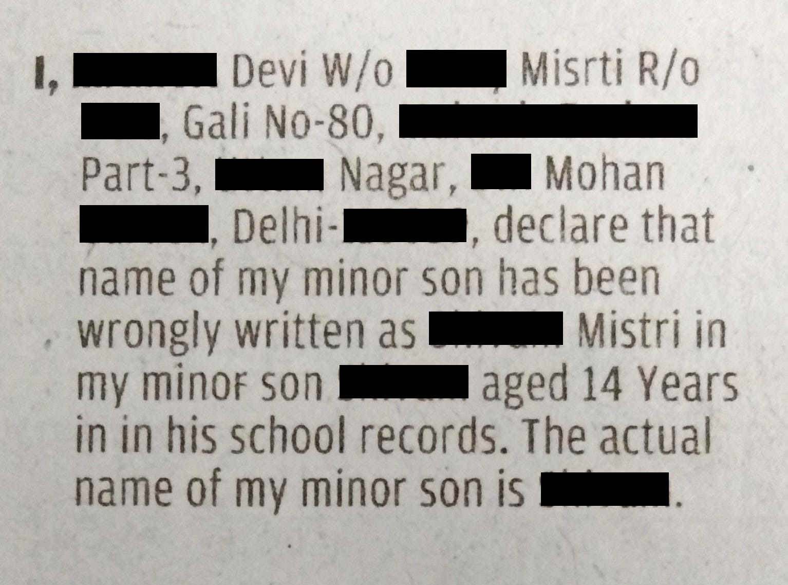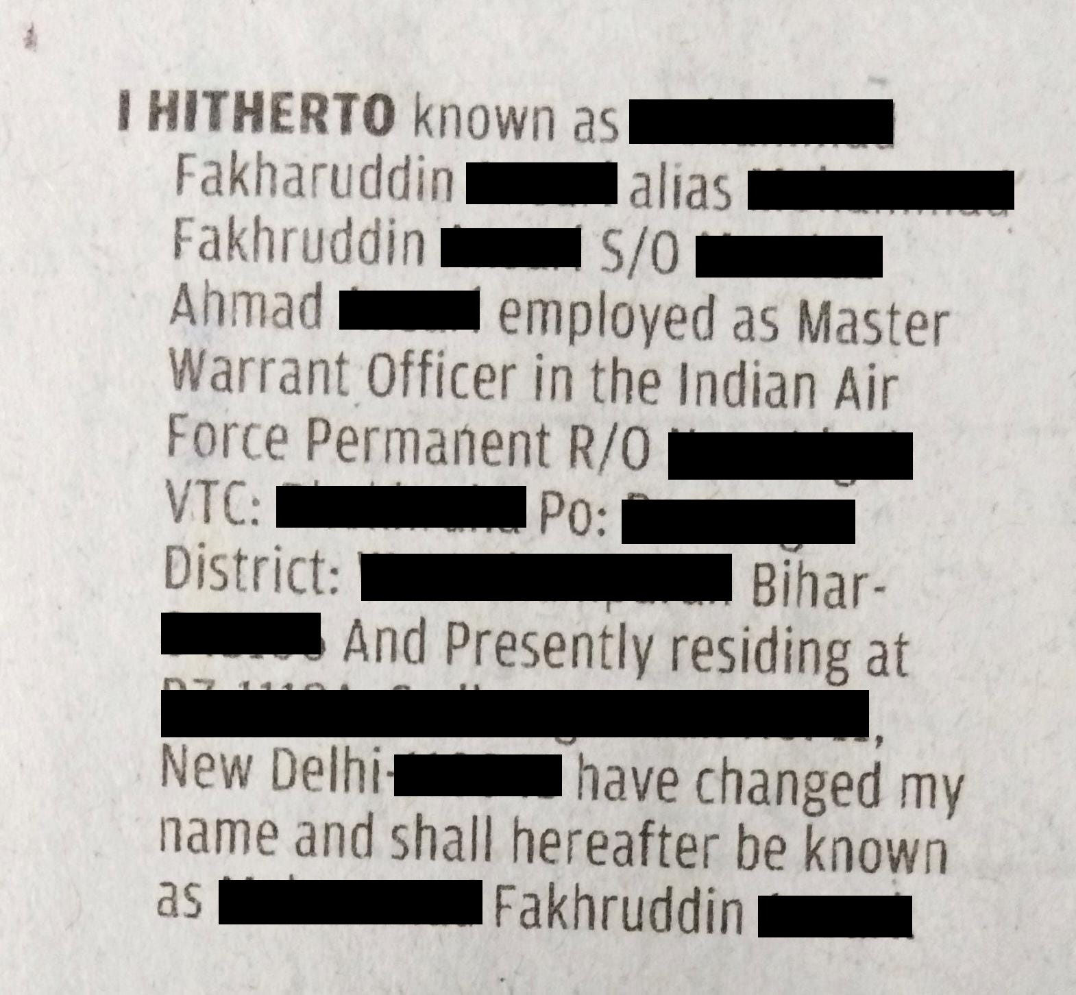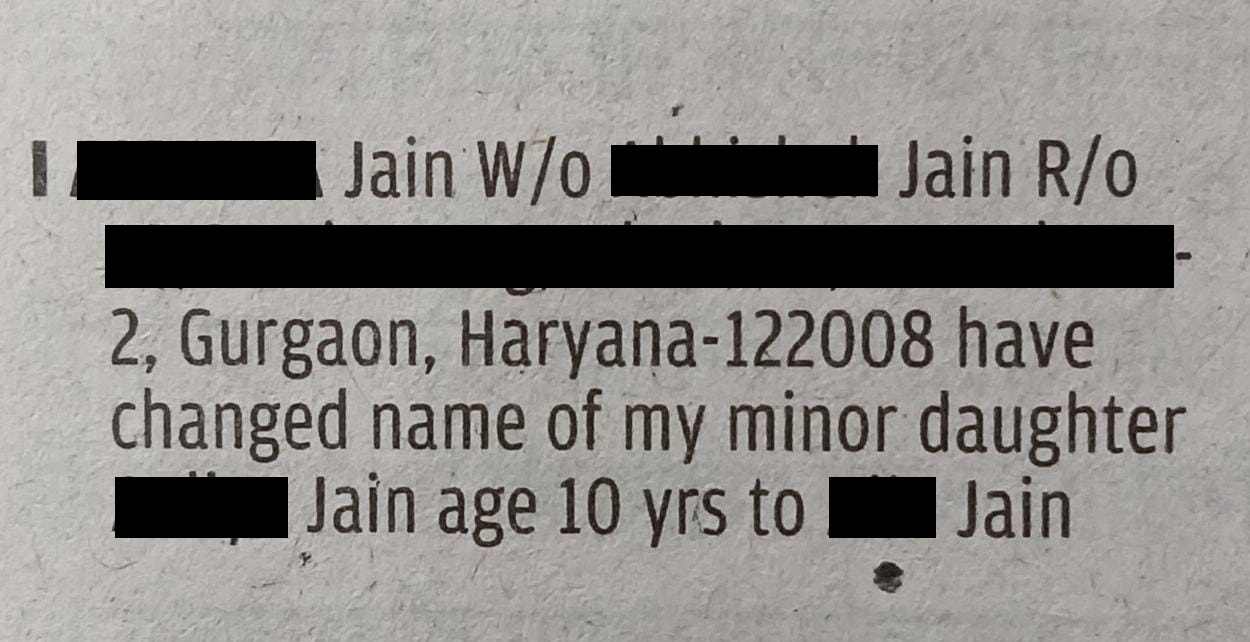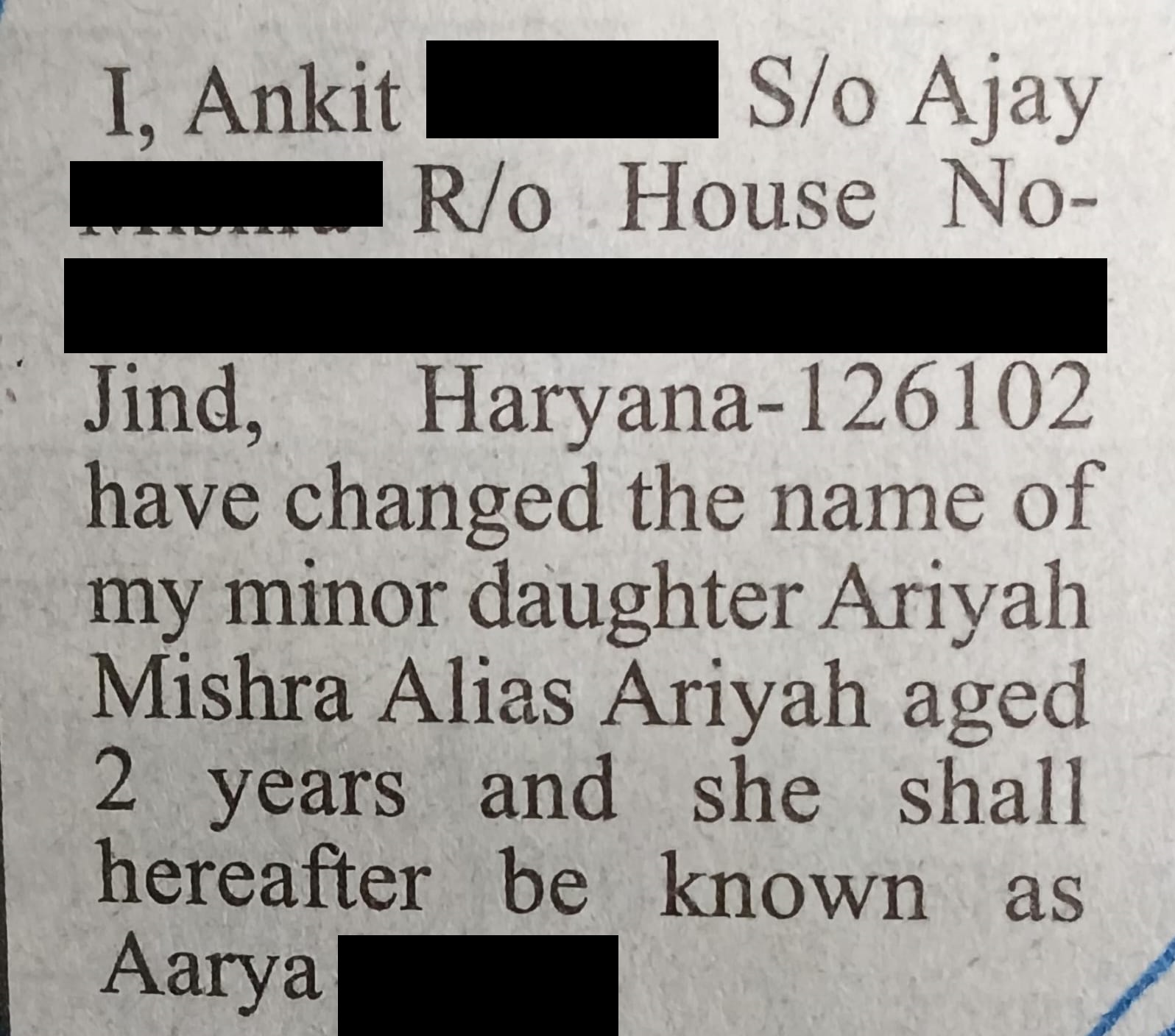 In India, changing your name necessitates a newspaper article, an affidavit, and a Gazette Notification.