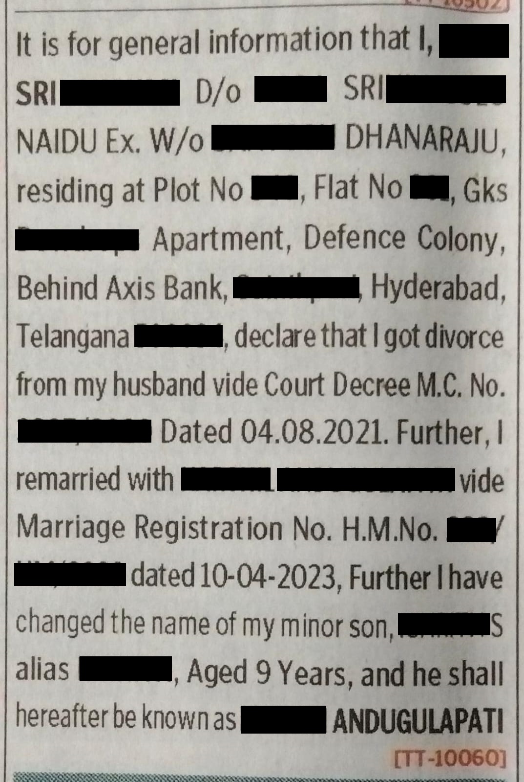 To change your surname in India, you must first create an affidavit, then publish it in newspapers and receive a Gazette Notification.