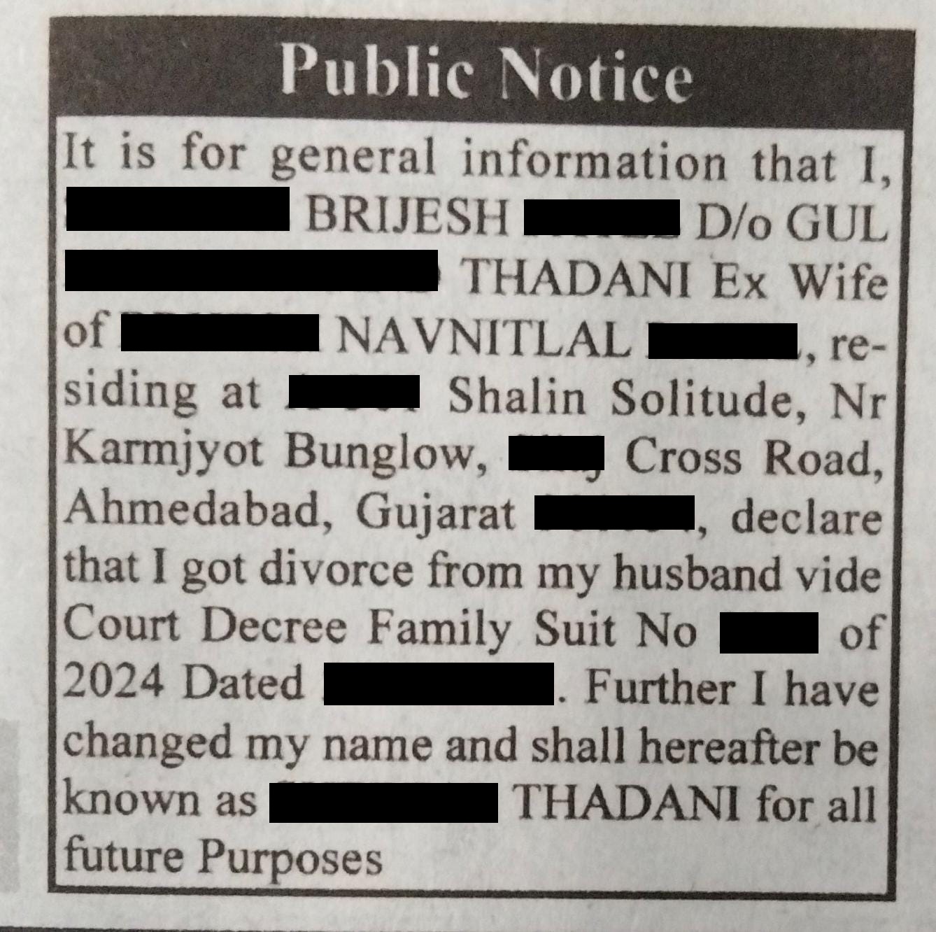 In India, you must draft an affidavit, publish it in newspapers, and receive a Gazette Notification to legally alter your last name.
